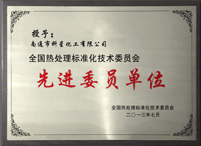 2013年7月, 全國(guó)熱處理行業(yè)授予南通科星化工有限公司全國(guó)熱處理標(biāo)準(zhǔn)化技術(shù)委員先進(jìn)委員單位。