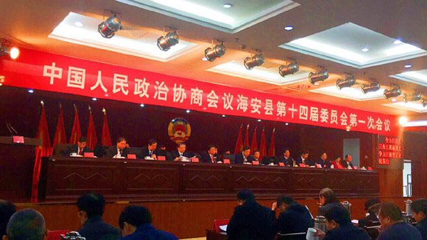 熱烈祝賀“中國(guó)人民政治協(xié)商會(huì)議海安縣第十四屆委員會(huì)第一次會(huì)議”勝利召開