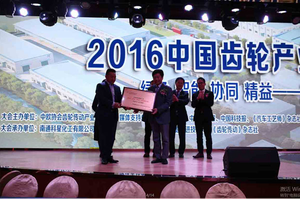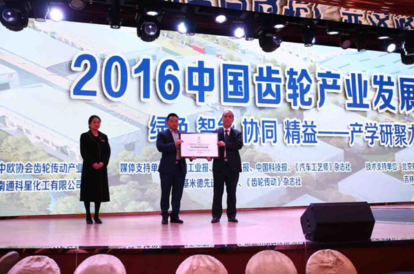 2016年11月23日,在“2016中國(guó)齒輪產(chǎn)業(yè)發(fā)展高峰會(huì)議”上,公司被中歐齒輪協(xié)會(huì)授予“中國(guó)綠色制造工藝科研與產(chǎn)業(yè)化基地”的稱號(hào)。