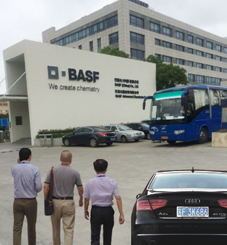 應(yīng)巴斯夫(中國(guó))有限公司高級(jí)經(jīng)理許益敏女士、中間體部張笑添先生的邀請(qǐng),公司董事長(zhǎng)吳龍鐵于2015年7月18日來(lái)到巴斯夫公司參觀交流。