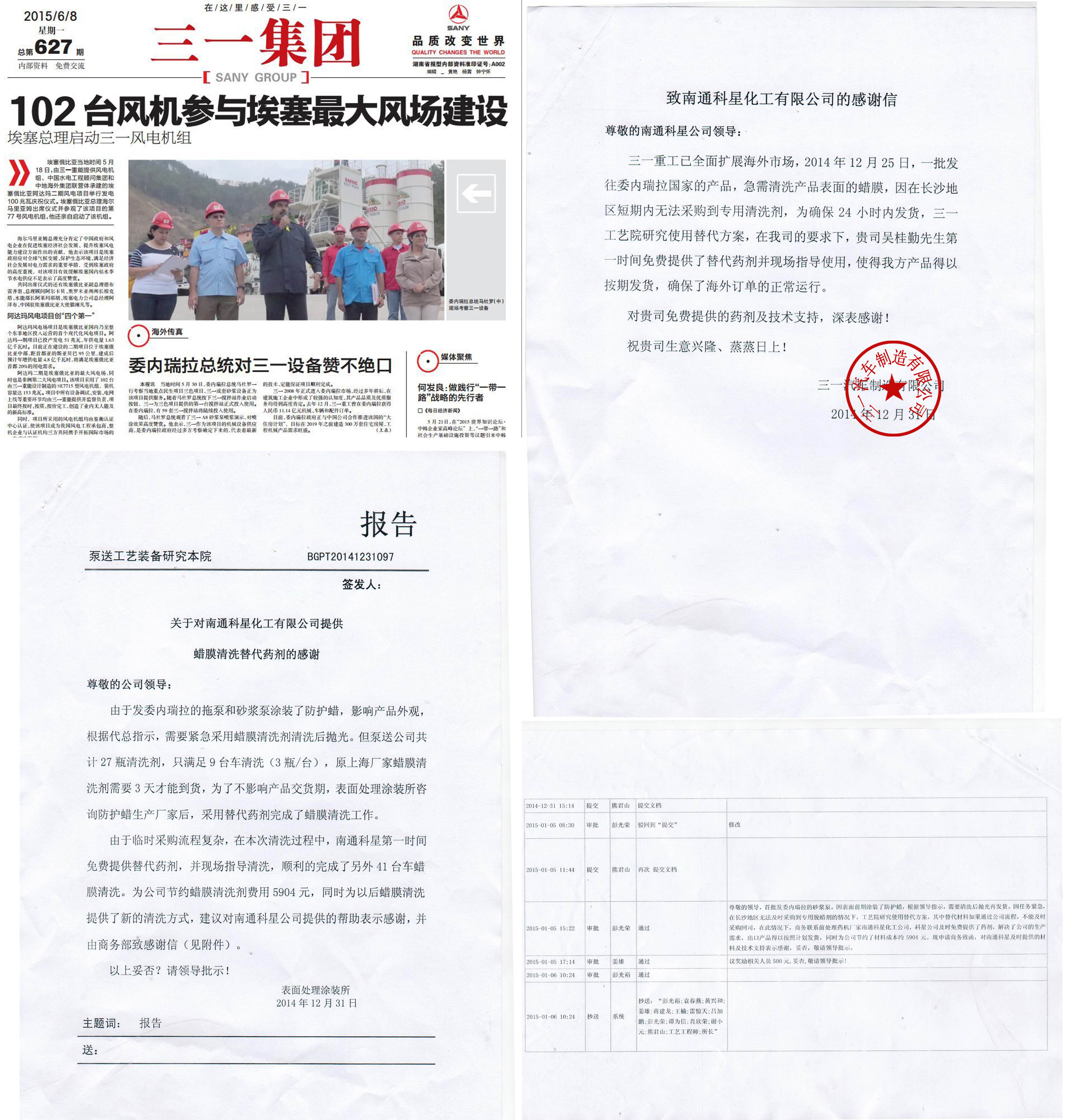 2014年12月份,三一重工特意寄來表揚信,肯定了科星公司的技術(shù)水平以及對科星的真誠合作表示感謝。