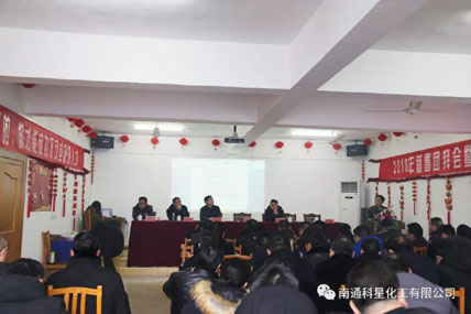 白甸鎮(zhèn)黨委副書記、鎮(zhèn)長許栩親臨年會現(xiàn)場致賀辭。集團董事長吳龍鐵先生、科星公司總經(jīng)理傅士超先生等領(lǐng)導(dǎo)與會做報告。傅總經(jīng)理對上年度工作進(jìn)行了務(wù)實的總結(jié),表彰了工作表現(xiàn)優(yōu)秀的員工。吳董事長展望2018年度預(yù)期銷售目標(biāo)達(dá)到2億元,制定了2019-2023年五年規(guī)劃:科星化工實現(xiàn)銷售收入5億元,江蘇科星新材料集團累計銷售收入10億元,爭取創(chuàng)業(yè)板成功上市。