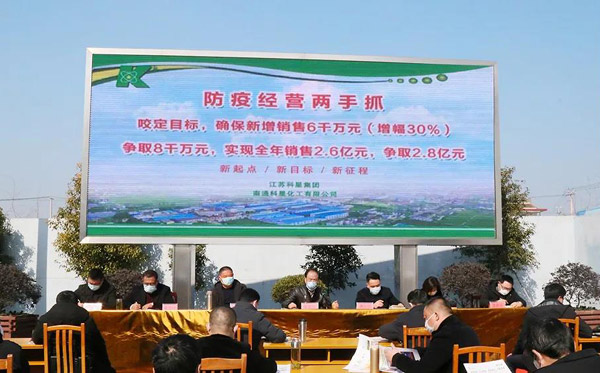 二十天后的2月20日,“防疫經(jīng)營(yíng)兩手抓,咬定目標(biāo),確保新增銷(xiāo)售6千萬(wàn)元(增幅30%),爭(zhēng)取8千萬(wàn)元,實(shí)現(xiàn)全年銷(xiāo)售2.6億元,爭(zhēng)取2.8億元”動(dòng)員大會(huì)在廠區(qū)露天廣場(chǎng)召開(kāi)。會(huì)議直奔主題,緊湊明快,現(xiàn)場(chǎng)激情高漲,令人振奮。這是科星公司在做好疫情防控的前提下,召開(kāi)的一次具有戰(zhàn)略意義的動(dòng)員會(huì)。