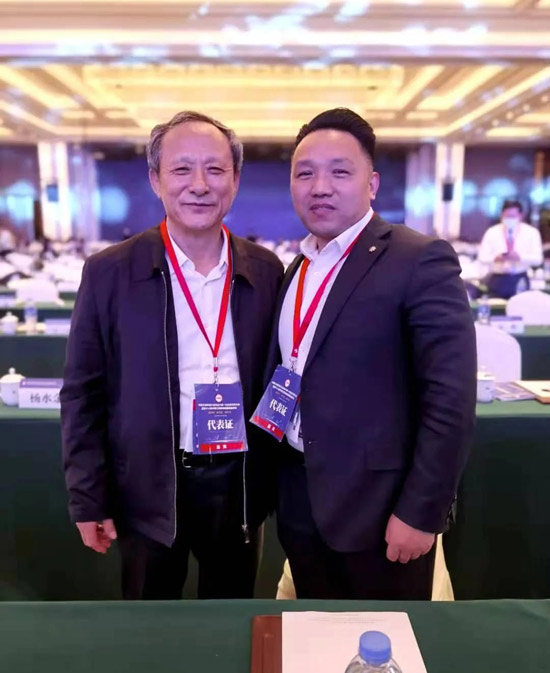 山河智能裝備股份有限公司董事長(zhǎng)何清華(左)與南通科星化工有限公司總經(jīng)理傅士超(右)合影留念