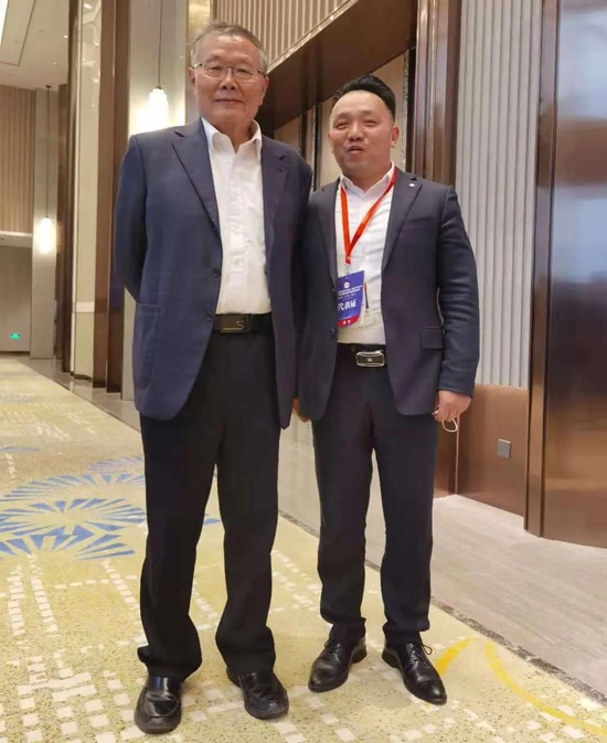 徐工集團(tuán)工程機(jī)械有限公司董事長(zhǎng)王民(左)與南通科星化工有限公司總經(jīng)理傅士超(右)合影留念