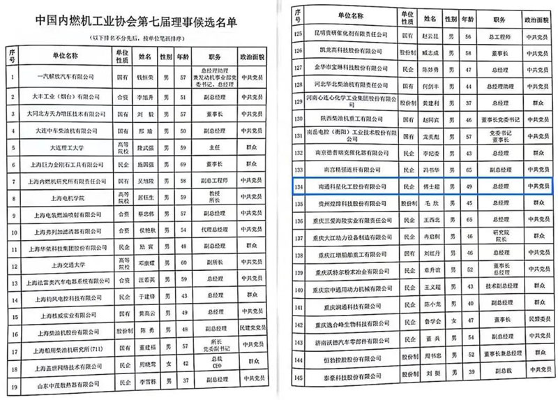南通科星化工股份有限公司當(dāng)選中國內(nèi)燃機(jī)工業(yè)協(xié)會(huì)理事單位