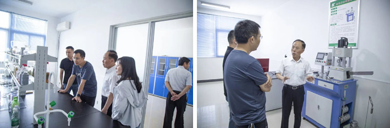 美的集團(tuán)考察組首先來(lái)到位于江蘇省級(jí)高新區(qū)(海安)江蘇科星新材料暨南通科星化工股份有限公司總部,董事長(zhǎng)吳龍鐵陪同考察組參觀科星研發(fā)中心,詳細(xì)介紹了研發(fā)中心各類儀器設(shè)備的功能應(yīng)用情況,考察組對(duì)科星的研發(fā)技術(shù)力量給予高度肯定。