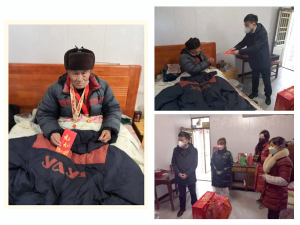 新春將至、歲寒情深。為表達對革命老兵的敬意之情,2023年1月9日,南通科星化工股份有限公司執(zhí)行總裁吳曉強帶領(lǐng)公司副總經(jīng)理劉小燕、工會委員邰俊華、汪小麗專程來到墩頭鎮(zhèn)曹莊村8組革命傷殘軍人顏夕林家中,向這位革命老兵送上慰問金和慰問品,同時致以新年的祝福和問候。