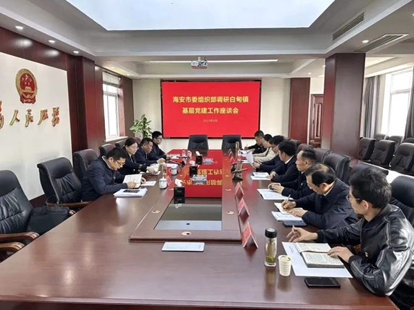 2023年4月22日上午,海安市委組織部常務(wù)副部長(zhǎng)、“兩新”工委書記、黨建辦主任吳蘭率市委組織部職能科室相關(guān)負(fù)責(zé)人來白甸鎮(zhèn)調(diào)研基層黨建工作。白甸鎮(zhèn)黨委書記蔣增鵬、黨委副書記崔君、組織委員施佳男、南通科星化工股份有限公司黨支部吳龍鐵作為企業(yè)代表參加活動(dòng)。