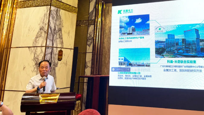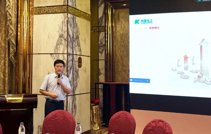 會議現(xiàn)場,廣州米奇化工有限公司總經(jīng)理、科星•米奇聯(lián)合實(shí)驗(yàn)室主任李少林親自主講,帶來了題為《國際、國內(nèi)行業(yè)勢分析及給科星帶來的發(fā)展新機(jī)遇》的專業(yè)報告,現(xiàn)場掌聲連連。