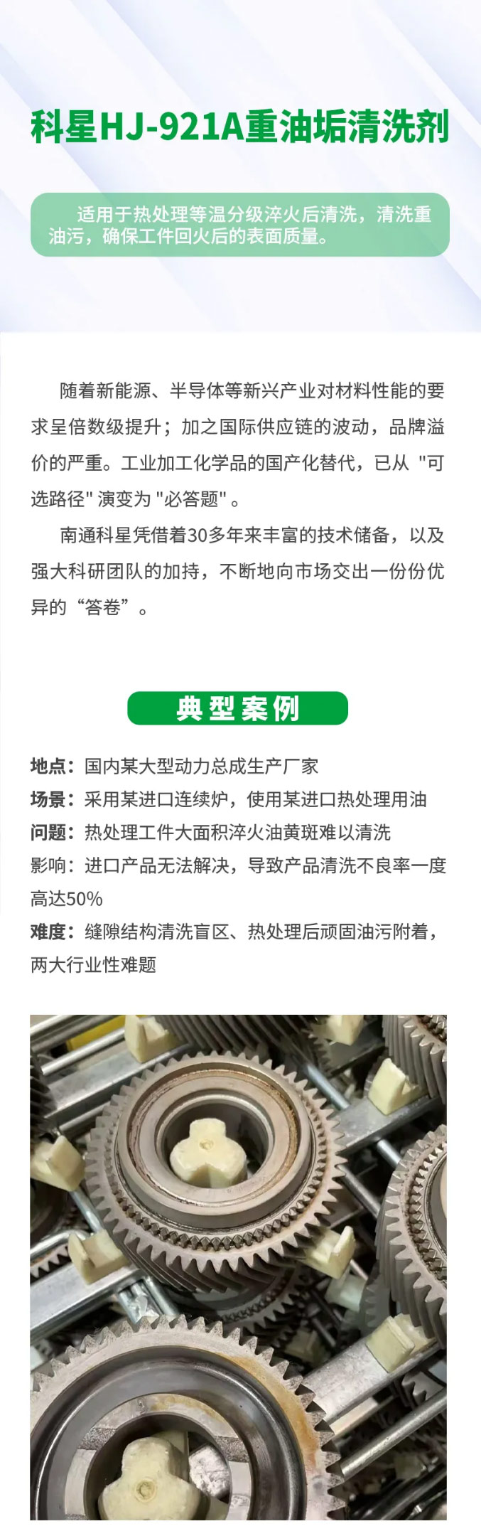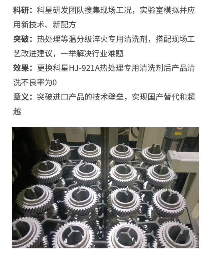 解決熱處理工藝清洗難題,爭做國產(chǎn)替代行業(yè)典范——科星HJ-921A重油垢清洗劑