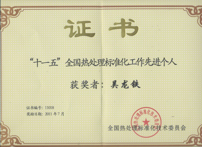 7月27日-8月1日,吳總在貴陽參加了全國熱處理會議。吳總被評為“十一五”全國熱處理標準化工作先進個人,同時繼續(xù)被聘請為全國熱處理標準化技術(shù)委員會(SAC/TC75)委員。