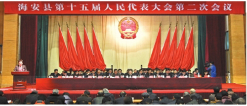 1月28日,海安縣第十五屆人民代表大會(huì)第二次會(huì)議在海中體藝館隆重召開!30日會(huì)議閉幕。公司董事長(zhǎng)吳龍鐵先生出席了會(huì)議。