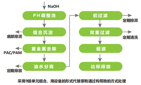 該設(shè)備結(jié)合超濾(簡稱UF)和反滲透(簡稱 RO)與傳統(tǒng)工藝的優(yōu)點,是一種將絮凝沉淀、高效膜分離技術(shù)與傳統(tǒng)物 理處理工藝相結(jié)合的新型高效廢水處理工藝,它用具有獨特結(jié)構(gòu)的超濾膜組件置于設(shè)備末端,使得出水水質(zhì)更有保障。處 理工藝與傳統(tǒng)污水處理方法具有很大區(qū)別,通過膜分離裝置代替?zhèn)鹘y(tǒng)工藝中的沉池和三級處理工藝。從而得到優(yōu)質(zhì)的出 水,解決了傳統(tǒng)廢水處理設(shè)備進(jìn)行廢水處理的出水水質(zhì)不達(dá)標(biāo)的問題。